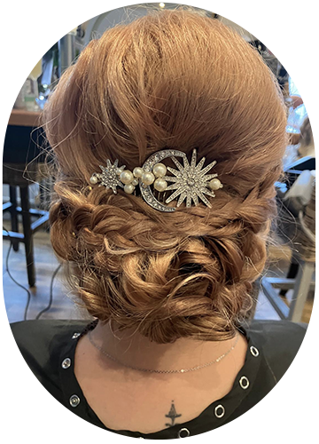 ” What a great salon, a lovely atmosphere and very friendly staff. Thank you for my wedding hair up do and the little glass of Buck’s Fizz. Thank you so much. x ”